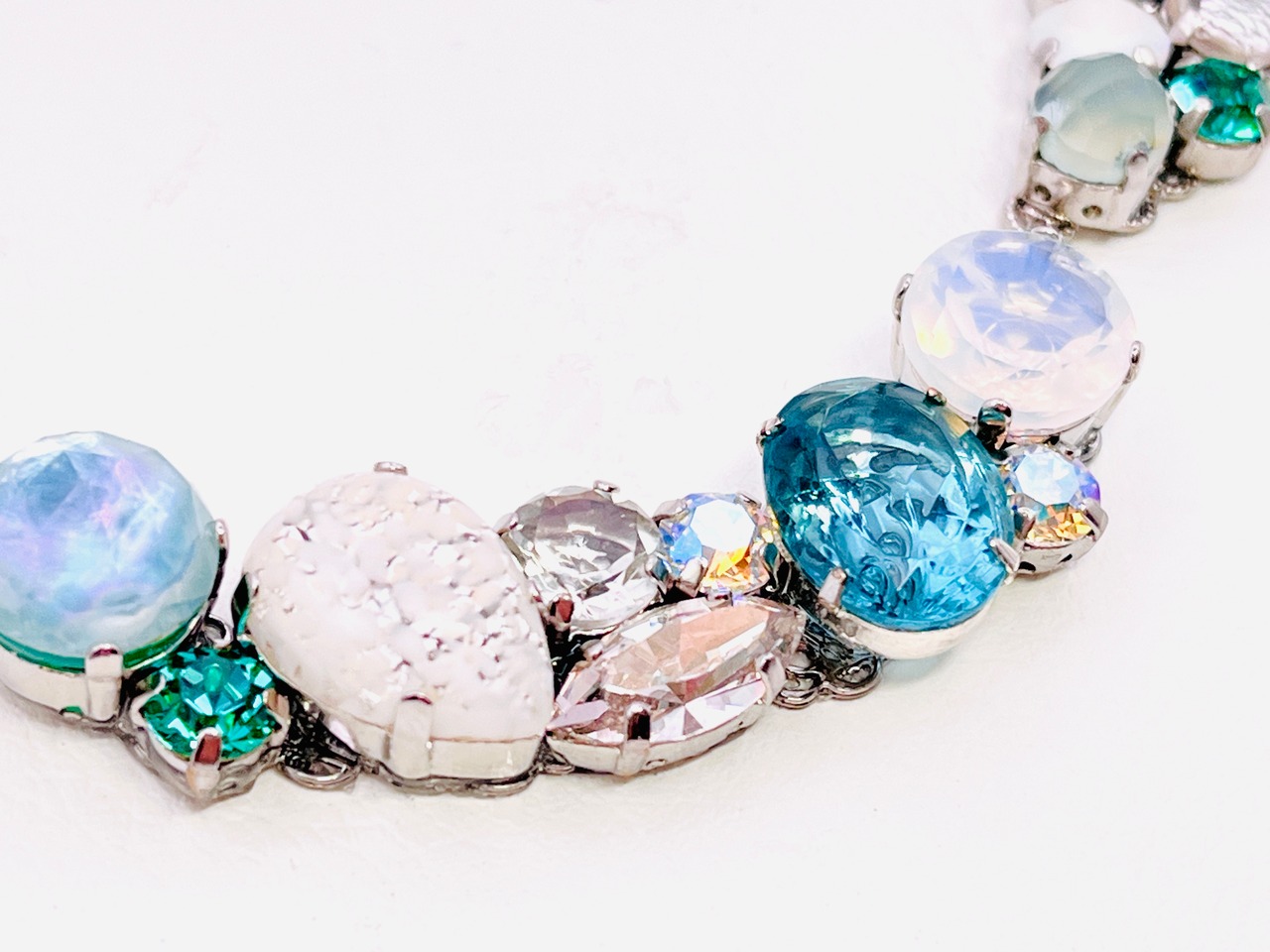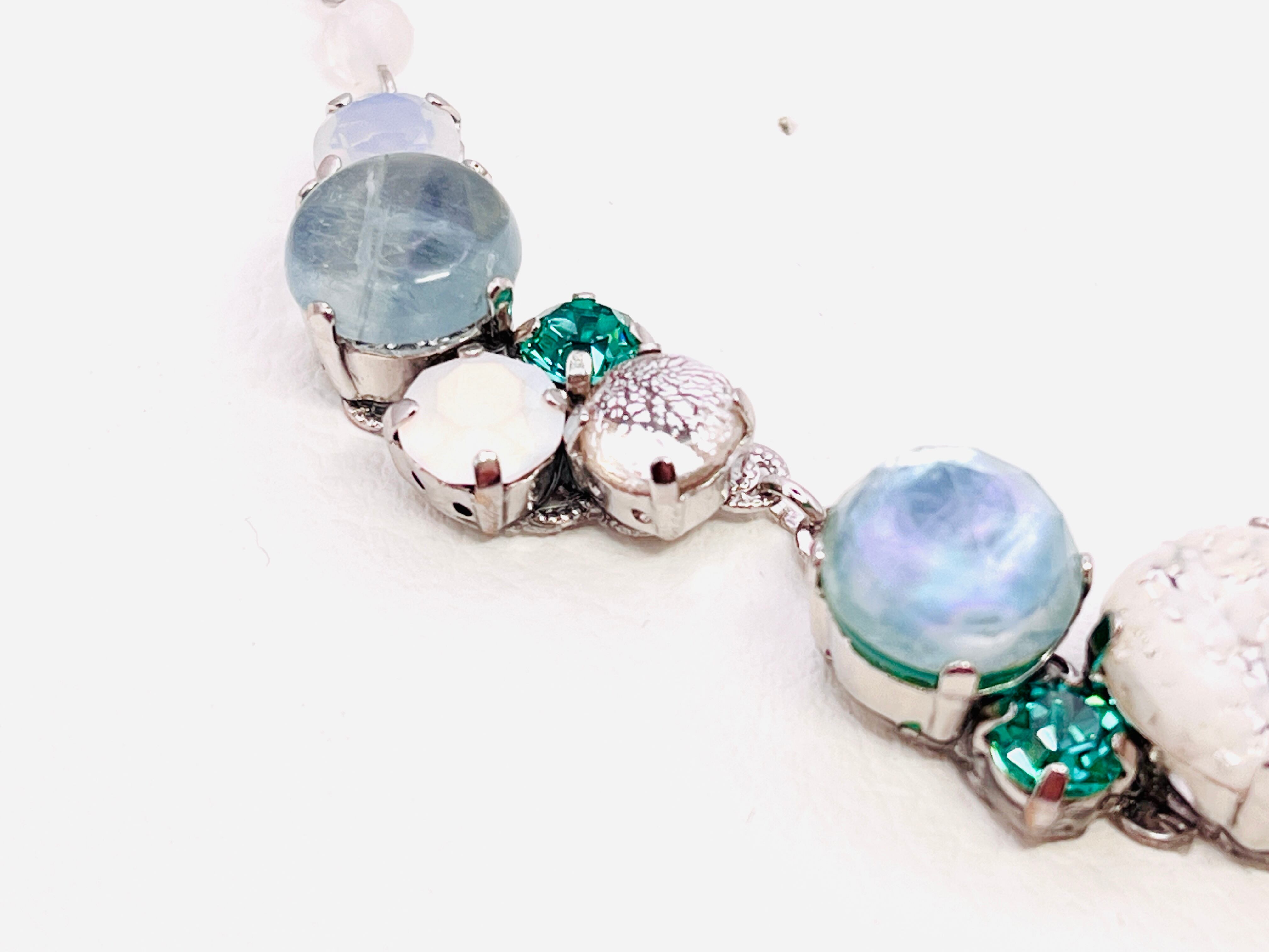 貴和クリスタル(ヨーロッパ産高級クリスタルガラスストーン)ほか、国内では余り見られないカラーストーン、一部ヴィンテージストーンや天然石などを使用しております。