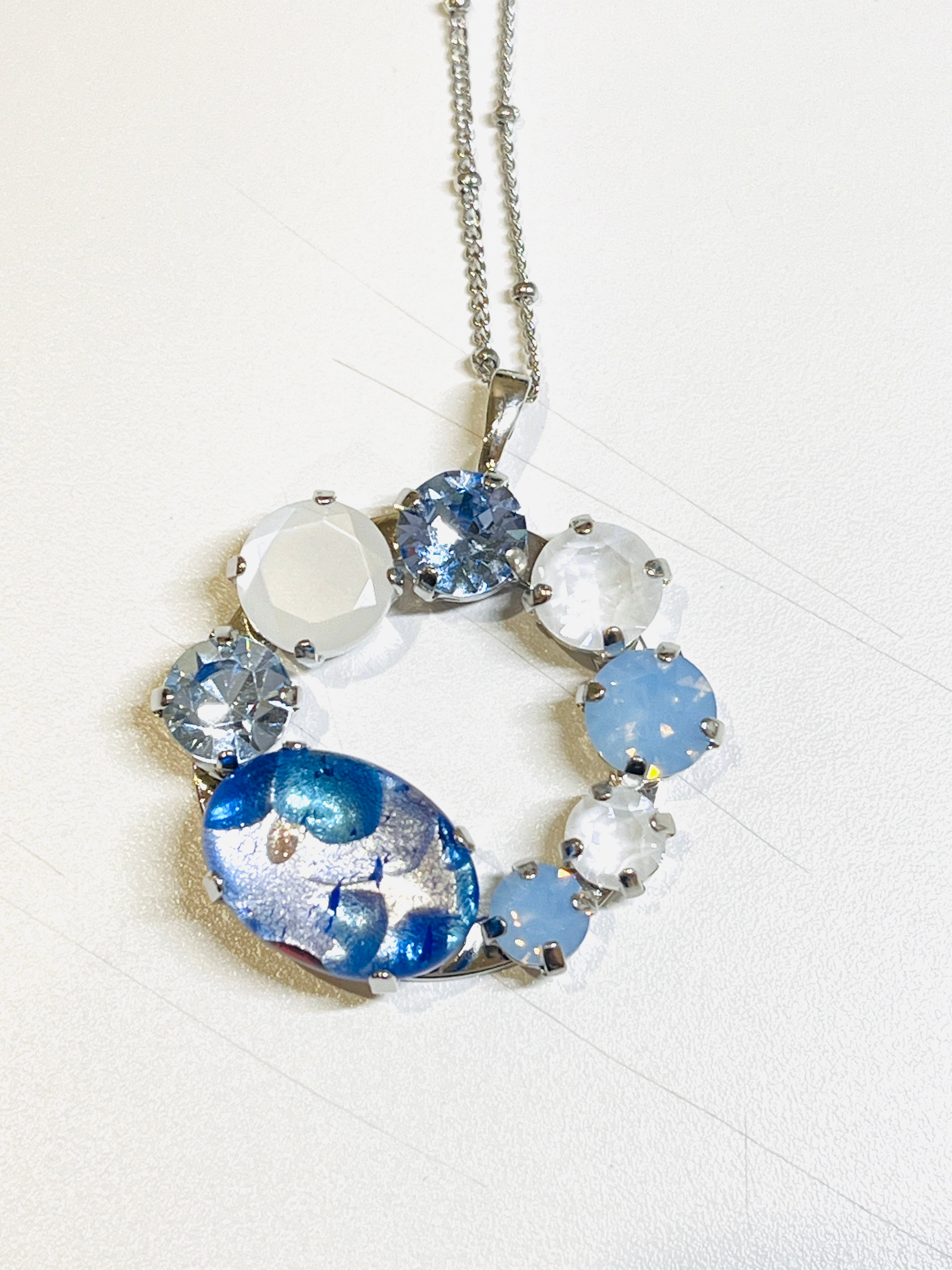 18*13mmのオーバルをメインにした花輪のようなリングのペンダントです。