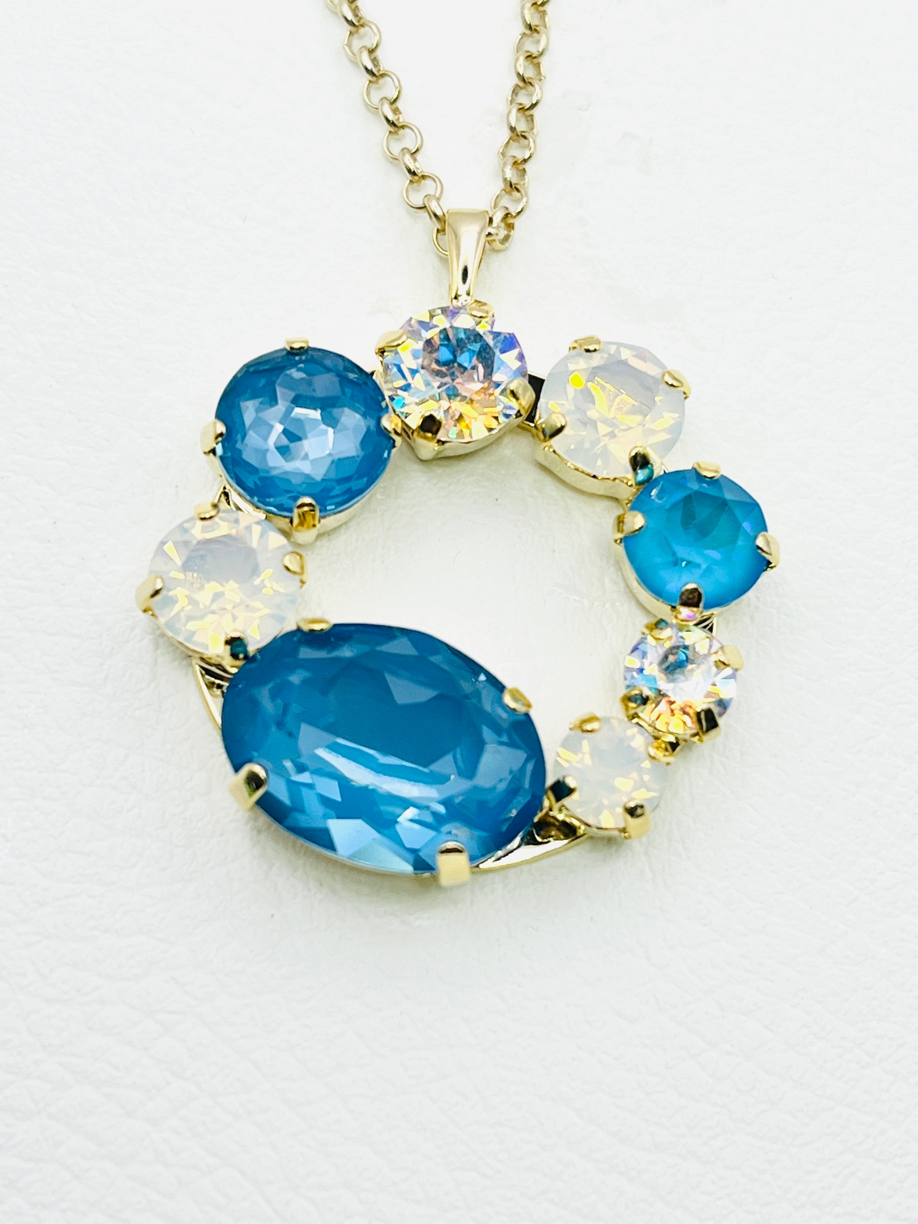 18*13mmのオーバルをメインにした花輪のようなリングのペンダントです。