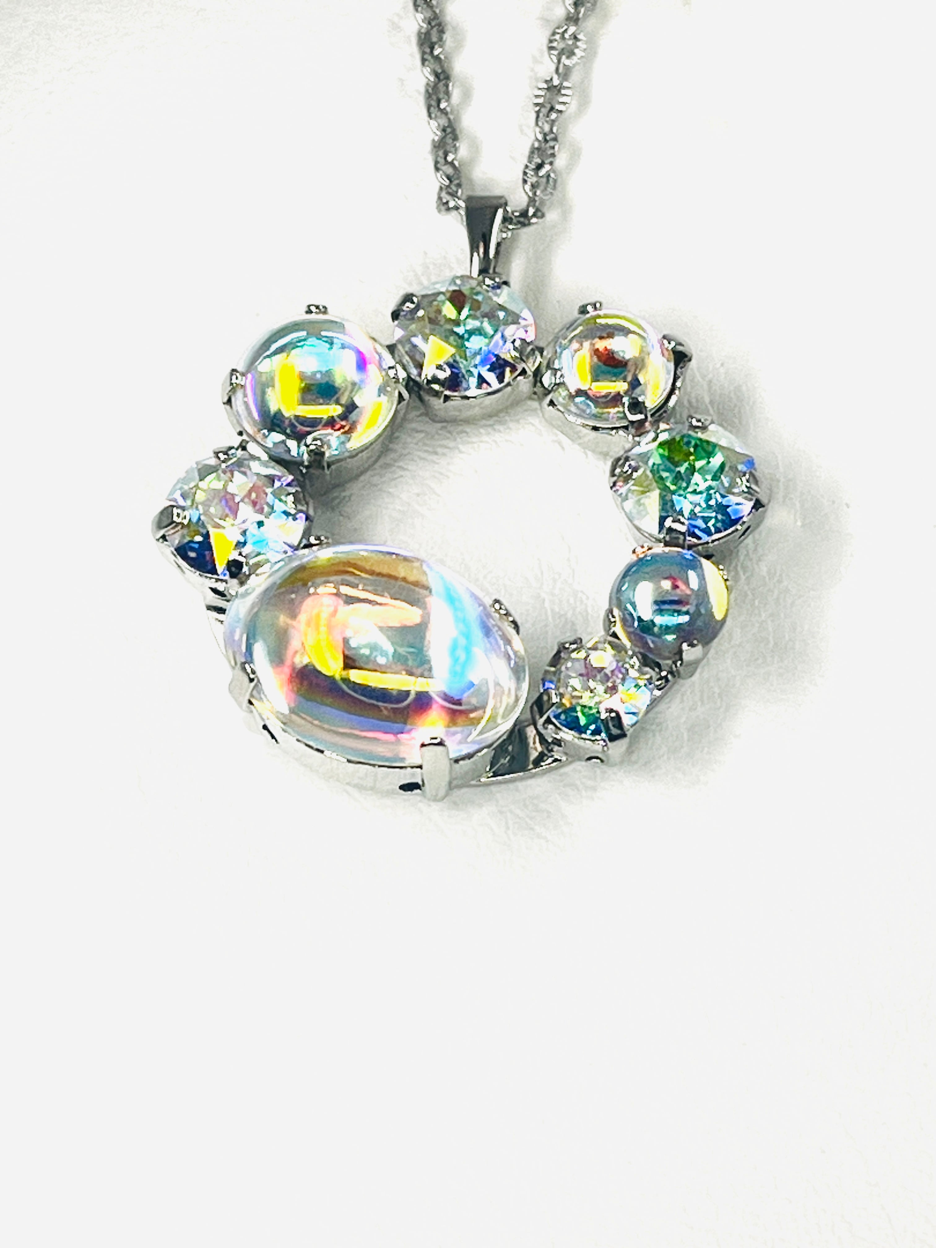 18*13mmのオーバルをメインにした花輪のようなリングのペンダントです。